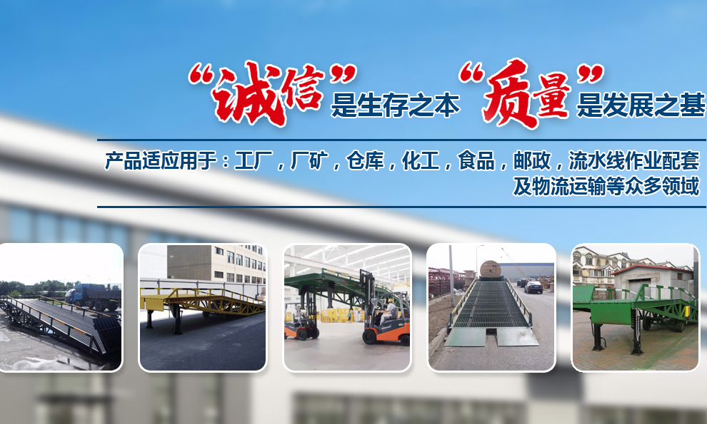 隨著國內(nèi)及國際市場需求的不斷擴(kuò)大,公司也在不斷引進(jìn)國內(nèi)外的先進(jìn)技術(shù)來充實(shí)自身。公司先后設(shè)計研發(fā)出了,大小型貨車配裝的:汽車液壓尾板,叉車裝卸貨用的:移動式登車橋;庫房外貨臺配裝的:固定式液壓升降平臺(貨臺高度液壓調(diào)節(jié)板);庫房內(nèi)外高層輸送貨物:導(dǎo)軌式升降貨梯,液壓升降平臺,旋轉(zhuǎn)液壓升降臺,及百噸位大型升降臺,等多種的先進(jìn)裝卸裝備,適應(yīng)用于:工廠,廠礦,倉庫,化工,食品,郵政,流水線作業(yè)配套及物流運(yùn)輸?shù)缺姸囝I(lǐng)域。
